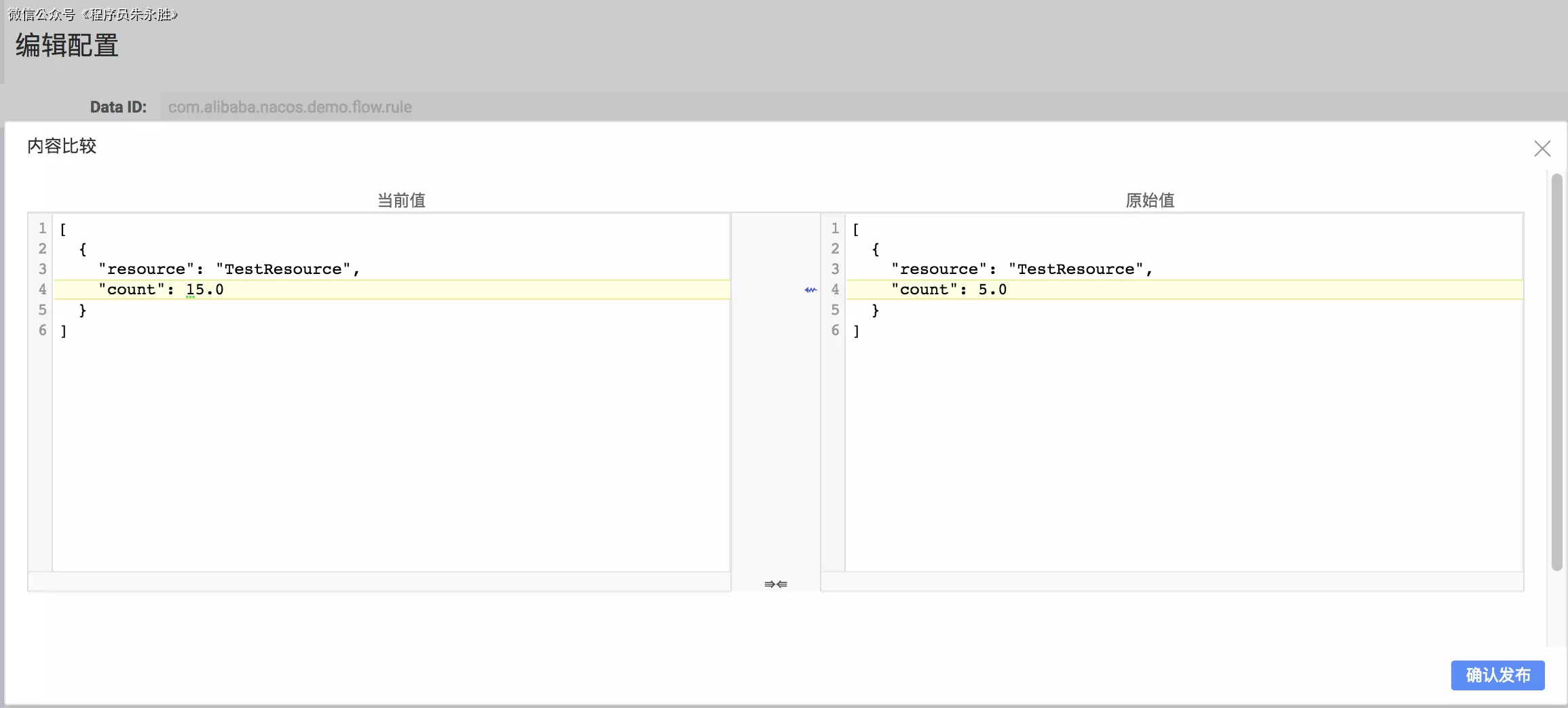 Nacos支持编辑DIFF能力,帮助用户校验修改内容,降低改错带来的风险。
