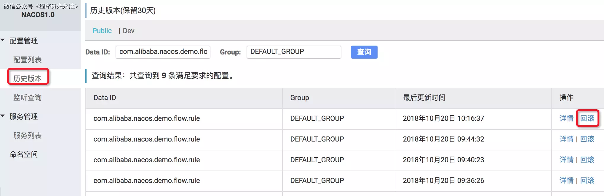 Nacos通过提供配置版本管理及其一键回滚能力,帮助用户改错配置的时候能够快速恢复,降低微服务系统在配置管理上的一定会遇到的可用性风险。