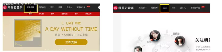 比如当点击【发现音乐】和【关注】时,只是更新下面部分内容,对于头部是不更新的