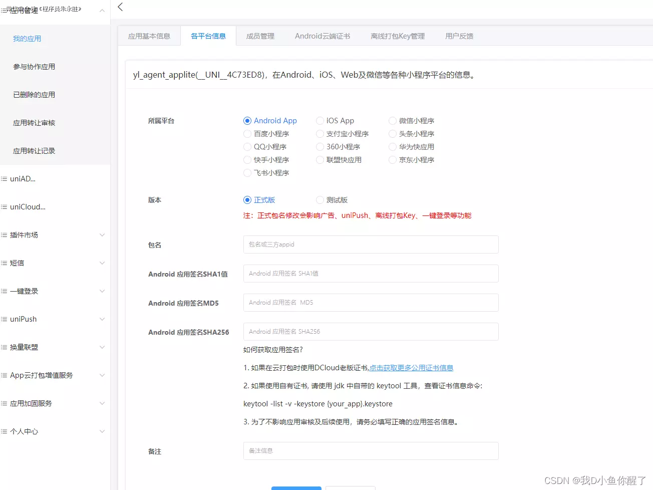 使用本地打包需要到DCloud官网为项目申请Appkey