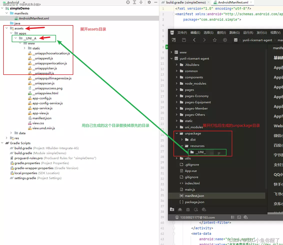 1.3、打包完成后会在项目目录中生成unapckage文件夹(就是步骤2的图片中倒数第二个文件夹)。