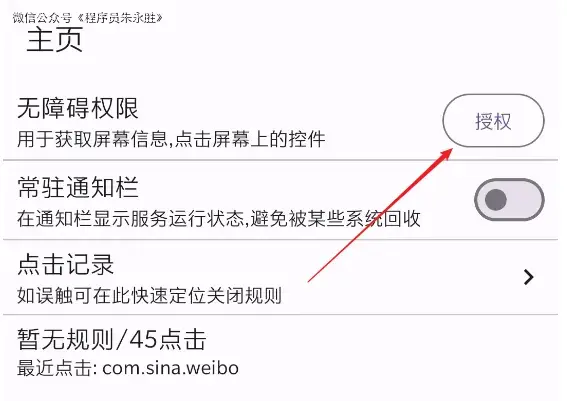 如果你是第一次使用,那么需要在主页开启无障碍权限,只有给了权限才能实现后续的功能。