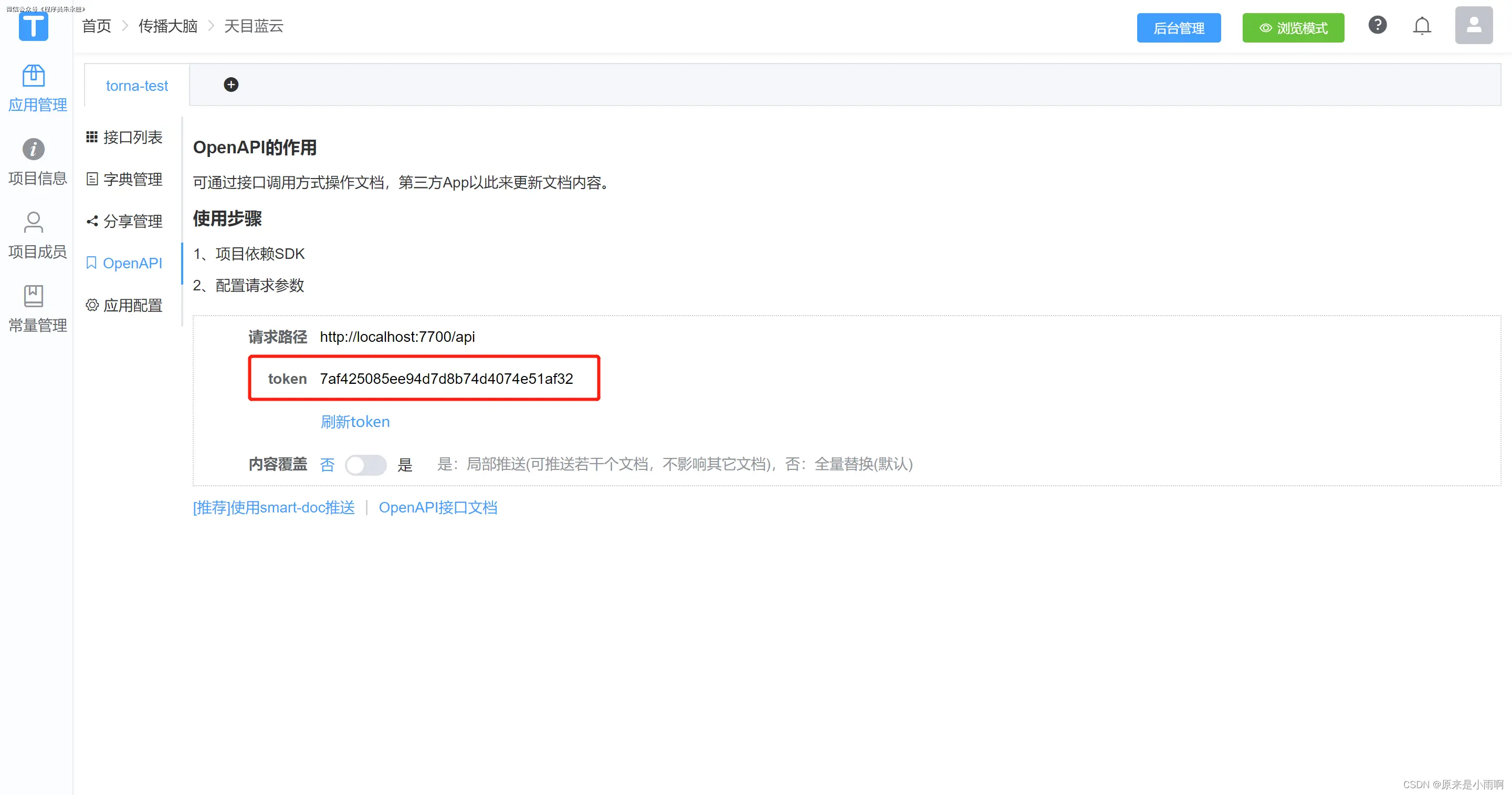 - appToken:Torna中的OpenAPI token