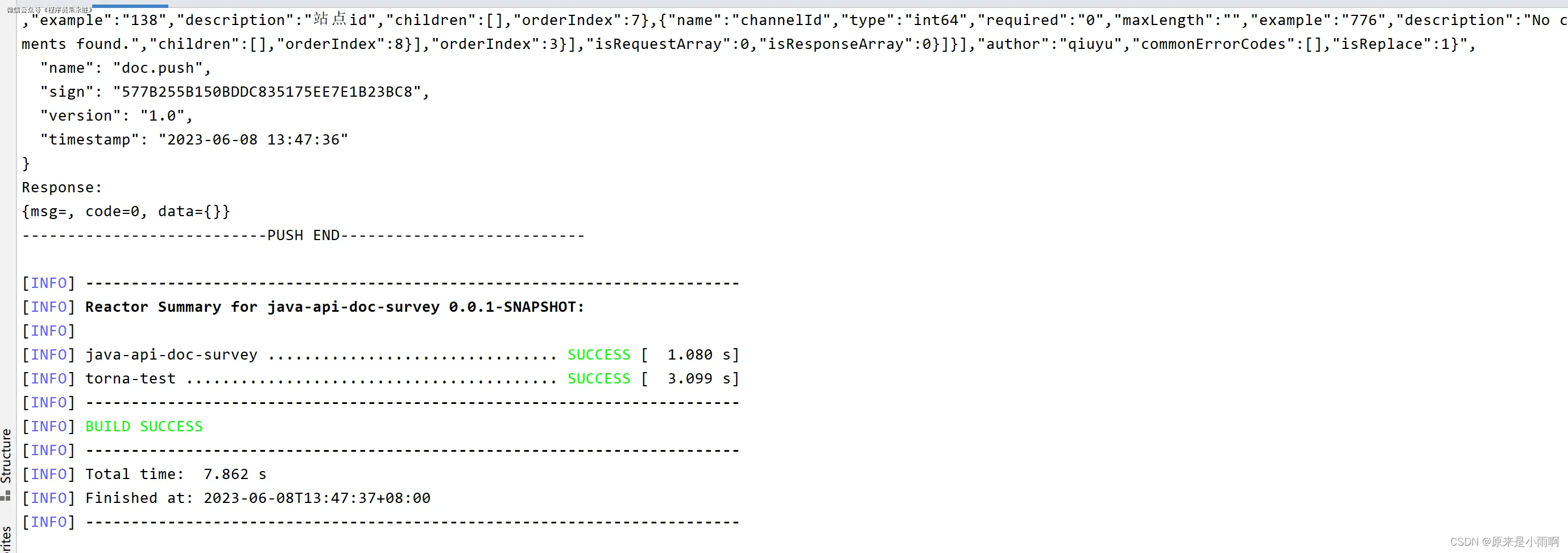 - 双击右侧maven插件栏中的smart-doc:torna-rest实现文档推送,当然也可以使用maven的命令行模式,如下