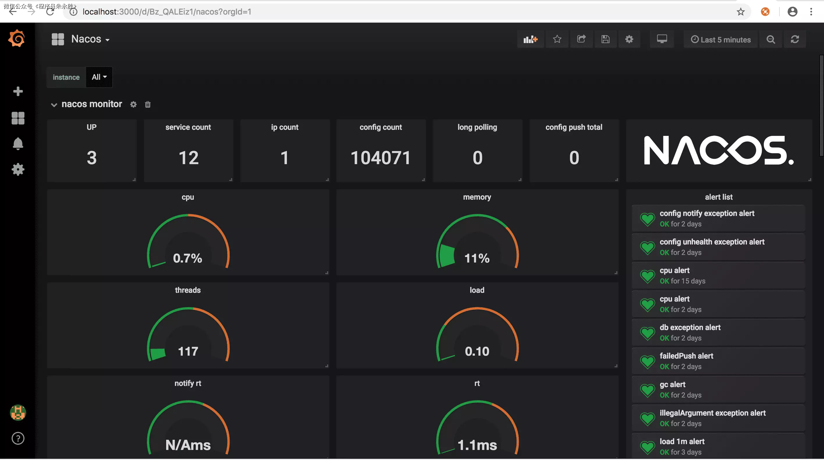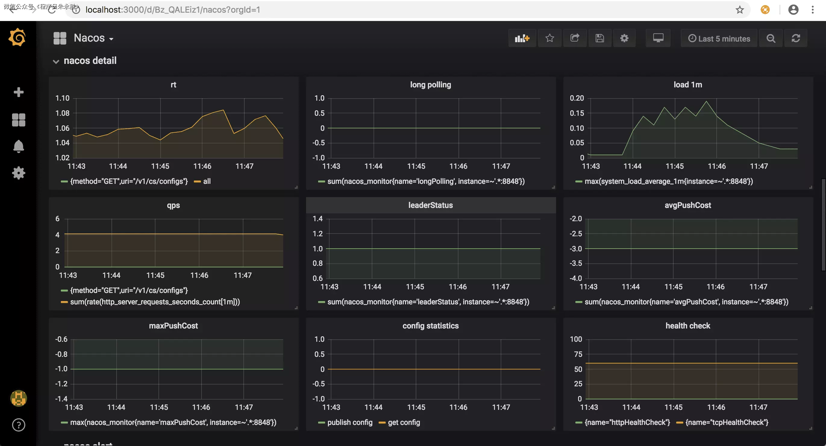 | nacos_monitor{name='configListenSize'} | 监听的配置数 |