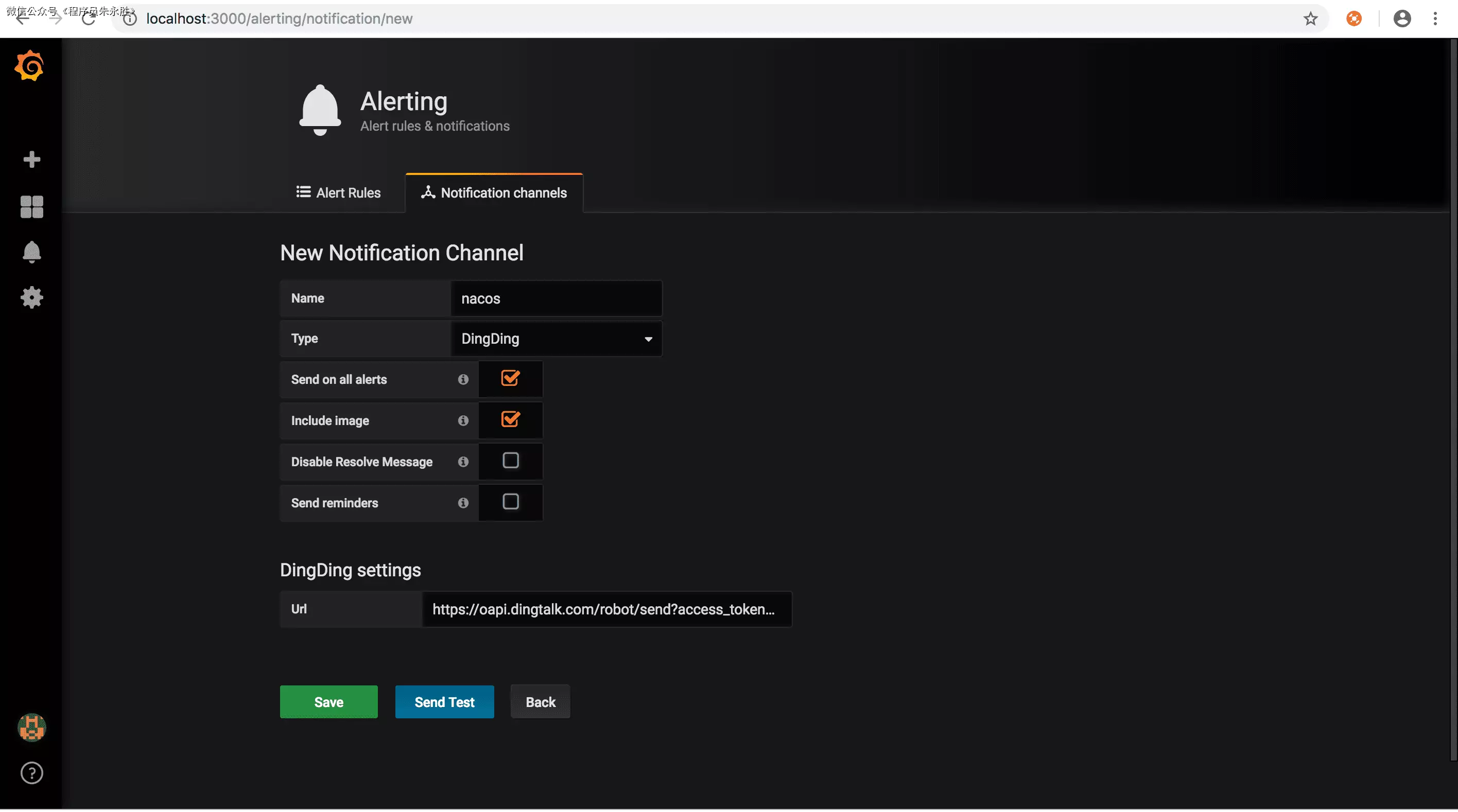 当Nacos运行出现问题时,需要grafana告警通知相关负责人。grafana支持多种告警方式,常用的有邮件,钉钉和webhook方式
