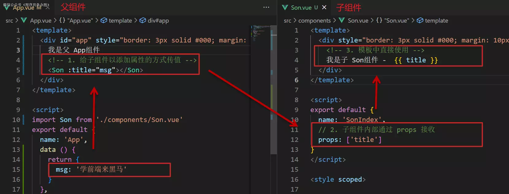 - 父组件通过 props 将数据传递给子组件