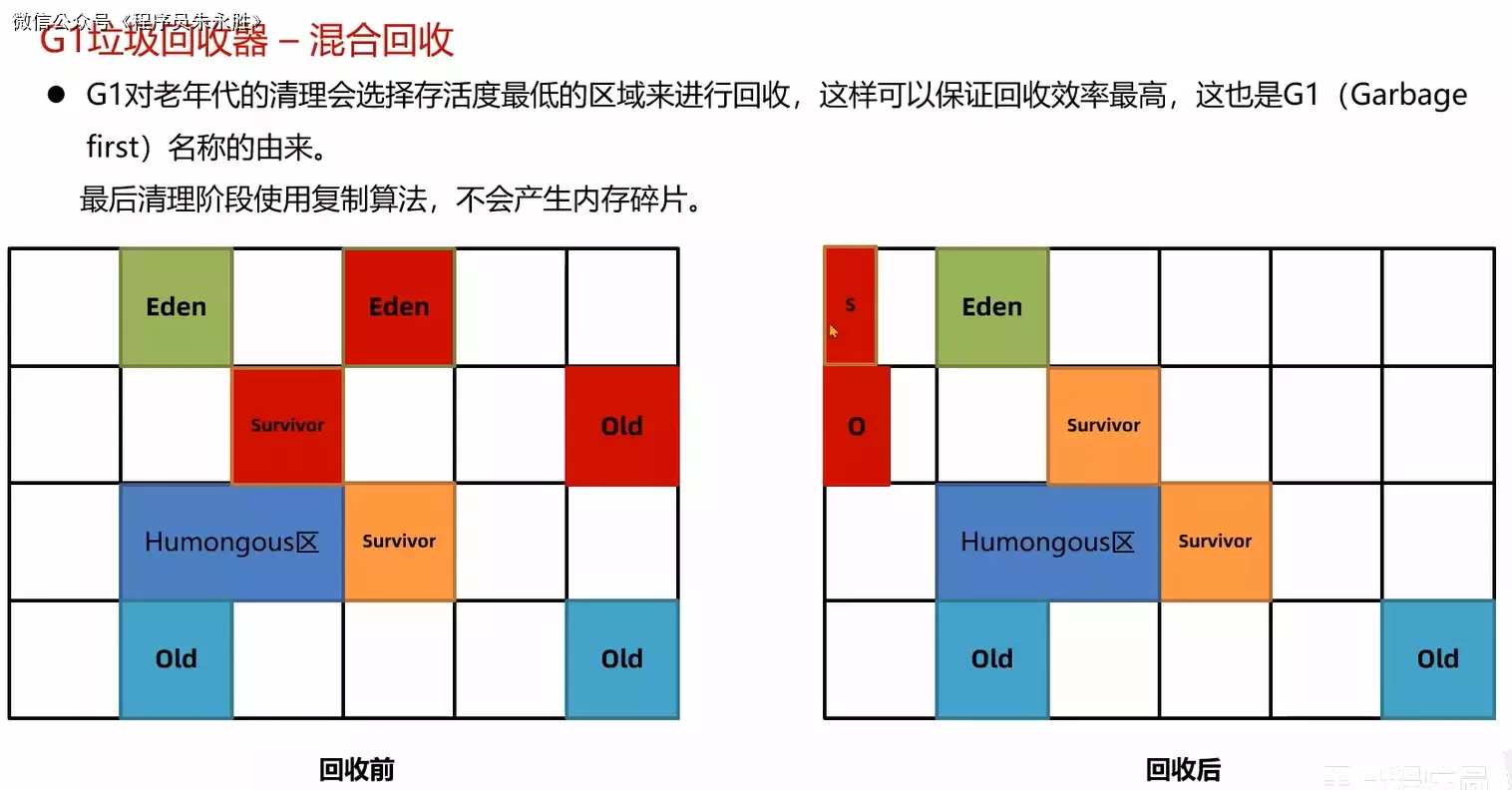 - 回收阶段:在回收阶段,G1垃圾回收器将空闲区域中的未使用对象进行回收,以便用于新的对象分配。