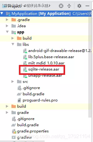 在官方提供的SDK解压后,在libs目录下找到sqlite-release.aar,并将其复制到app/libs下: