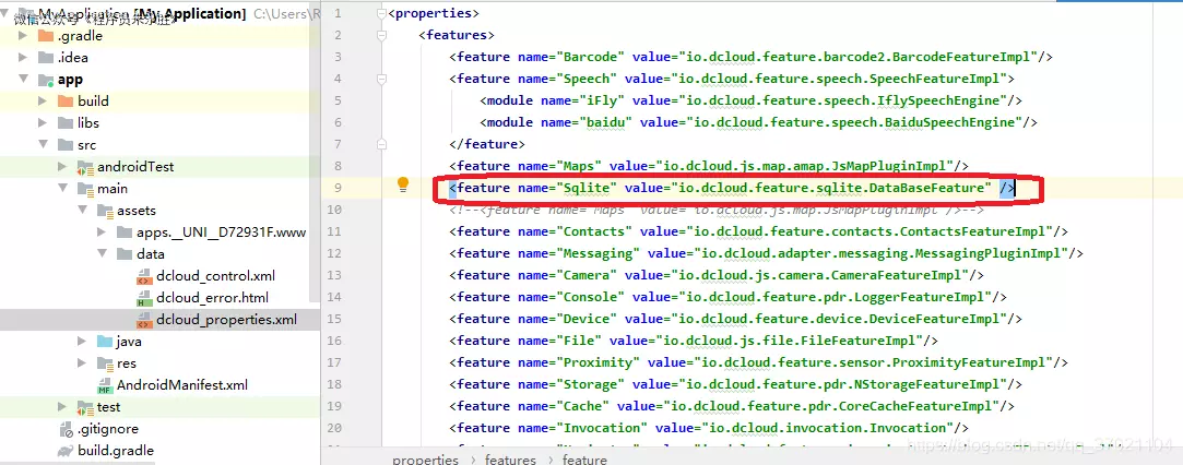 <feature name="Sqlite" value="io.dcloud.feature.sqlite.DataBaseFeature" />
