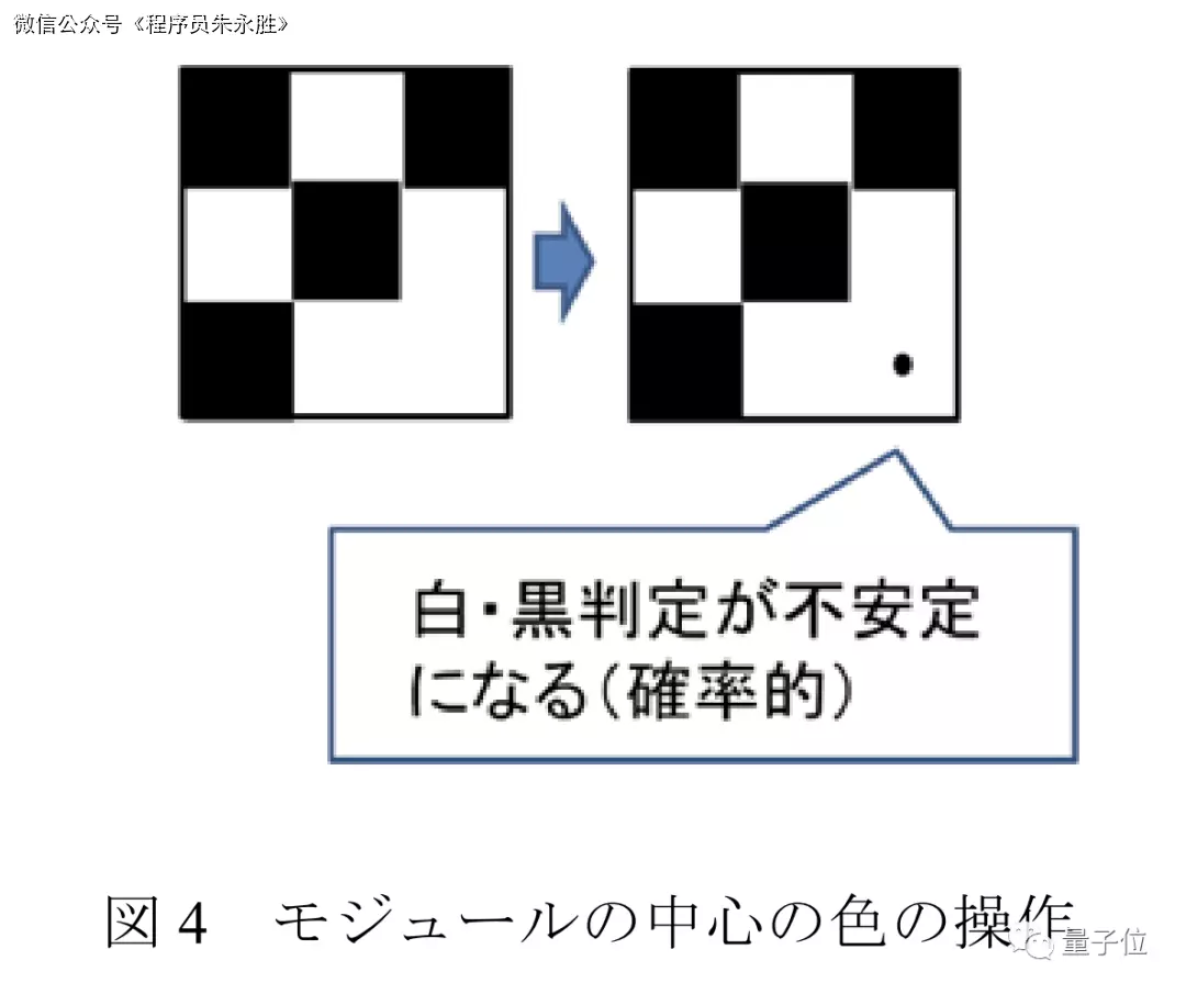 经过照射之后,虽然肉眼看不出区别,但在摄像头的视角下原本是黑色的模块就会被识别为白色。