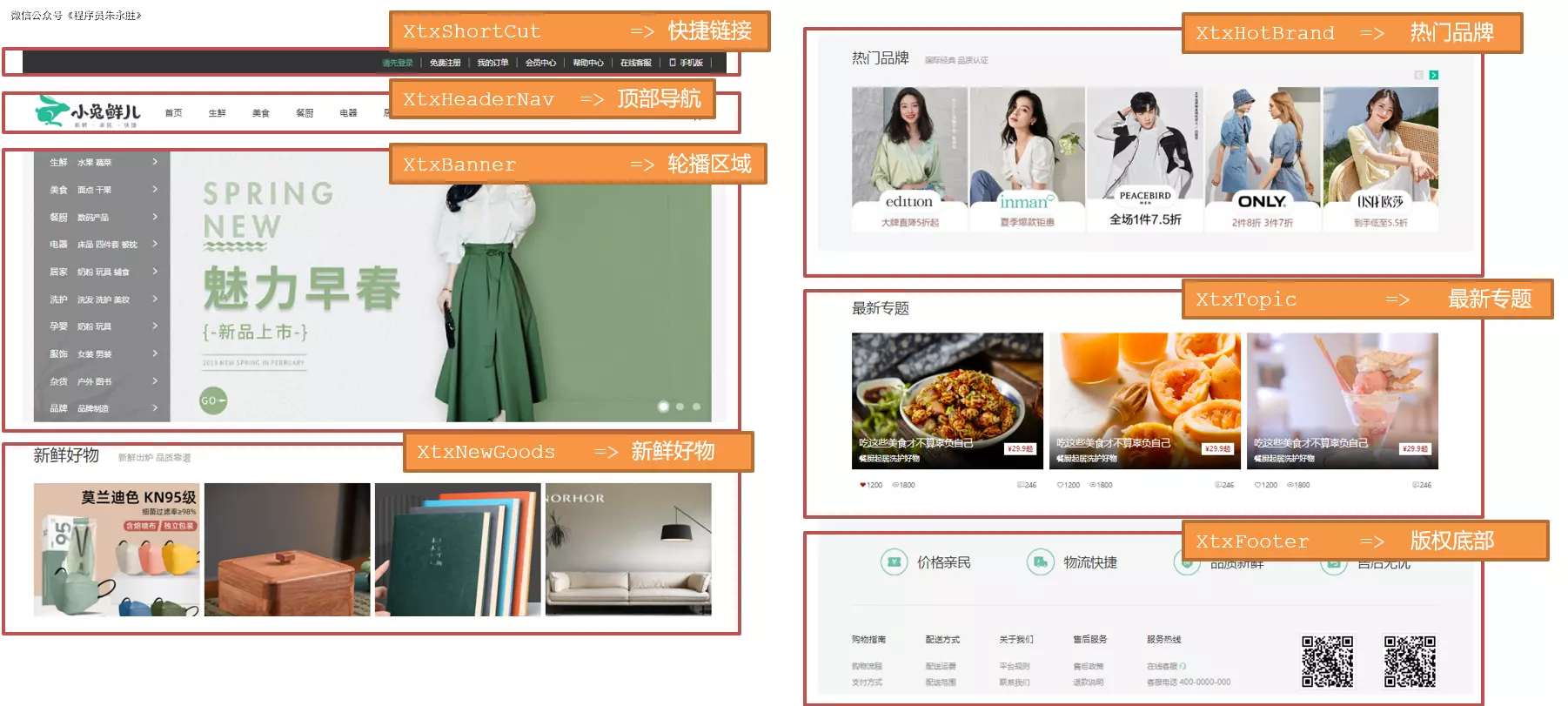 比如:下面这个页面,可以把所有的代码都写在一个页面中,但是这样显得代码比较混乱,难易维护。咱们可以按模块进行组件划分