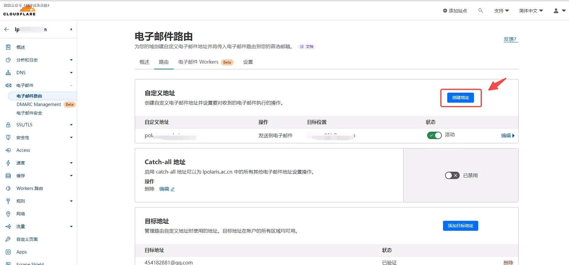 Cloudflare 是一个好东西, 自己要在互联网上折腾,这个必须得有,这里只是用了他的一个很基础的功能,并且这个邮箱功能是免费的